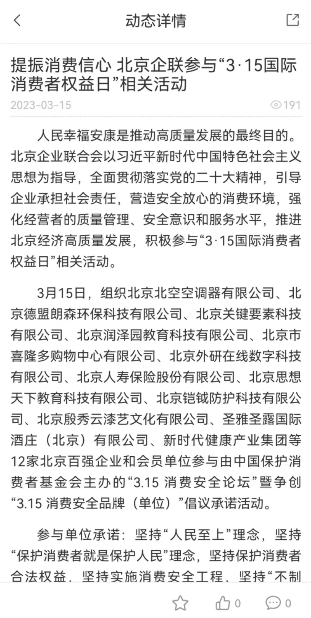 2023年3月15日,由中国保护消费者基金会主办,中国保护消费者基金会消费安全工作委员会、中国保护消费者基金会消费安全专项公益基金管理委员会承办的“3.15消费安全论坛”暨争创“3.15 消费安全品牌(单位)”倡议活动在北京举行。