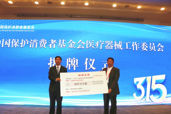 深圳中仁信息科技有限公司向中国保护消费者基金会捐赠伍仟万元人民币,曹希同代表公司捐赠,中国保护消费者基金会理事长陈四光接受捐赠