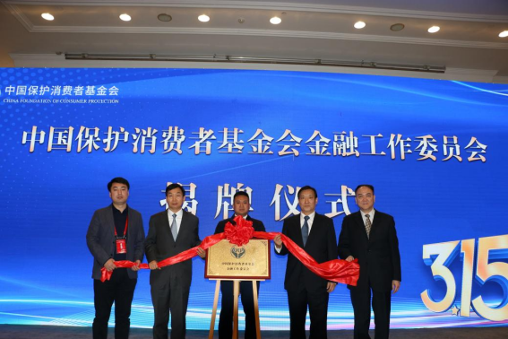 牛青山(右二)、陈四光(左二)、周郑生(右一)、张阔骋(中)、陈超(左一)共同为“中国保护消费者基金会金融工作委员会”揭牌