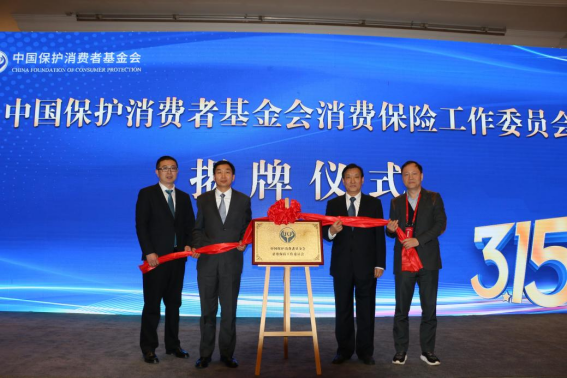 牛青山(右二)、陈四光(左二)、谷新房(左一)、何重洋(右一)共同为“中国保护消费者基金会消费保险工作委员会”揭牌