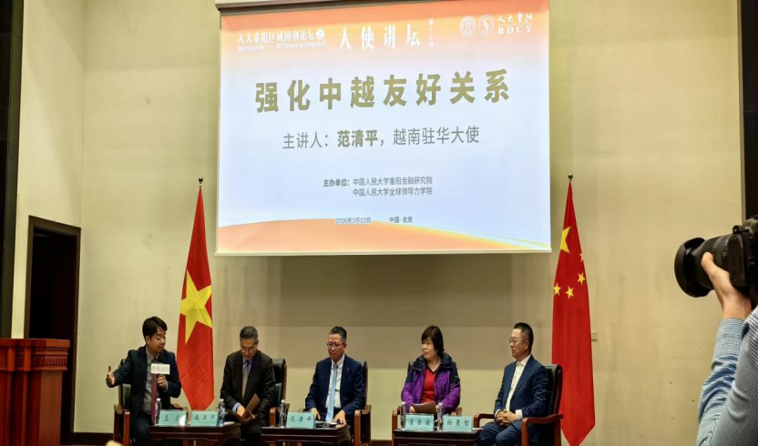 此次研修班学员还参加了中国人民大学重阳金融研究院区域国别论坛之“大使讲坛”系列活动,现场聆听了越南大使范清平先生围绕“强化中越友好关系”发表的主旨演讲。