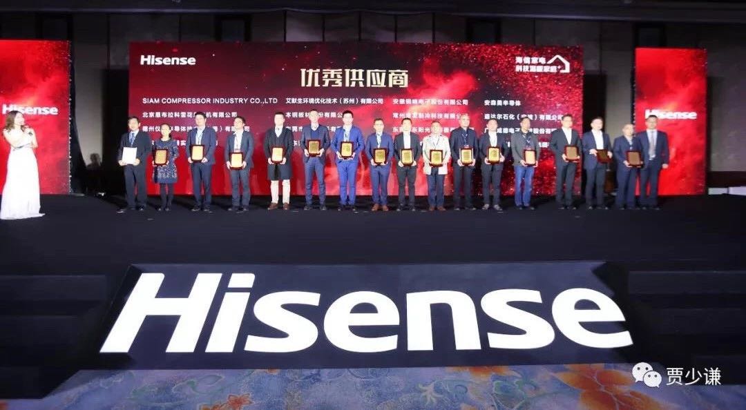 ↑ 在海信家电集团首届供应商大会上,为了感谢供应商一直以来的支持和帮助,颁发了战略互信奖、质量卓越奖等奖项,对为海信家电做出突出贡献的核心供应商进行表彰。